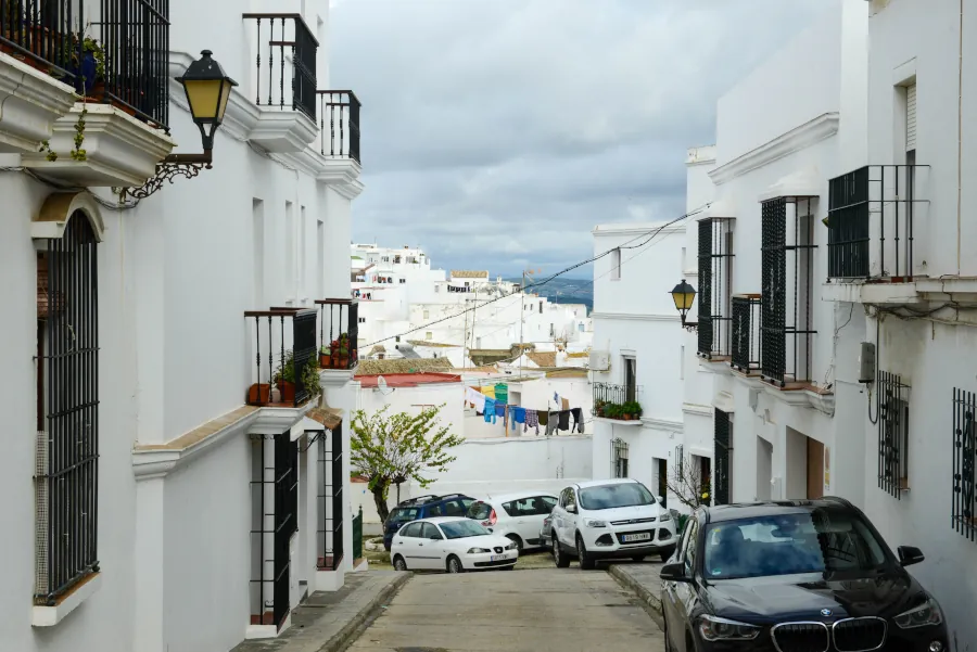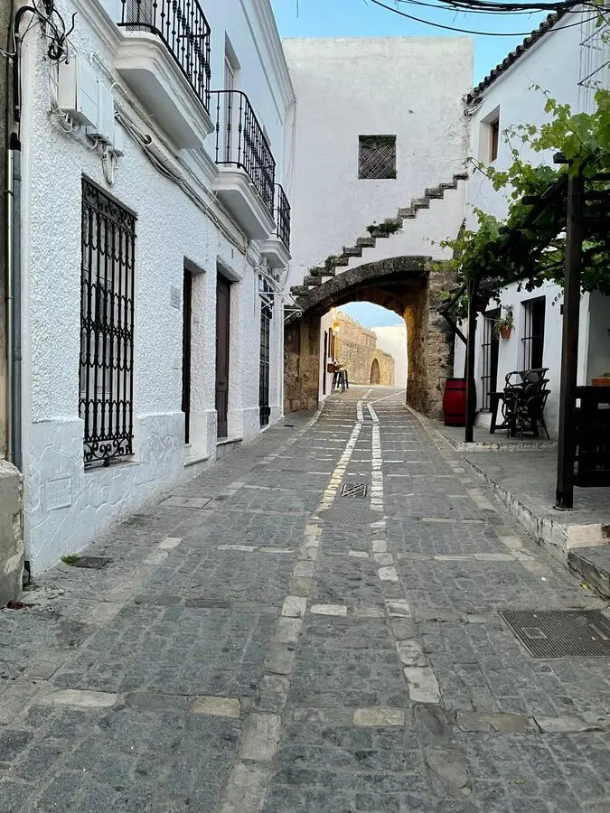 Dans les centres historiques fortifiés, il est fréquent que l’habitat ancien se soit construit au plus près des remparts, voire en continuité directe avec eux. À Vejer, cette réalité urbaine s’exprime par un tissu de maisons imbriquées, adaptées aux pentes, et reliées par des passages, des paliers et des patios.