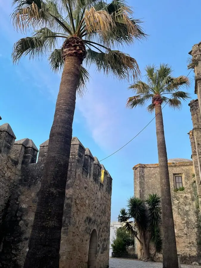 Vejer de la Frontera s’est développée sur une colline, dans une logique de contrôle et de protection du bourg. Cette position dominante a favorisé l’implantation d’une enceinte fortifiée dont le tracé suit la topographie. Le relief participe pleinement à la défense : ravins, ruptures de pente et vallée du Barbate contribuent à créer des obstacles naturels, complétés par les ouvrages bâtis. L’ensemble forme un système défensif cohérent, structuré par des pans de muraille, des points de surveillance, et des accès organisés par des portes.